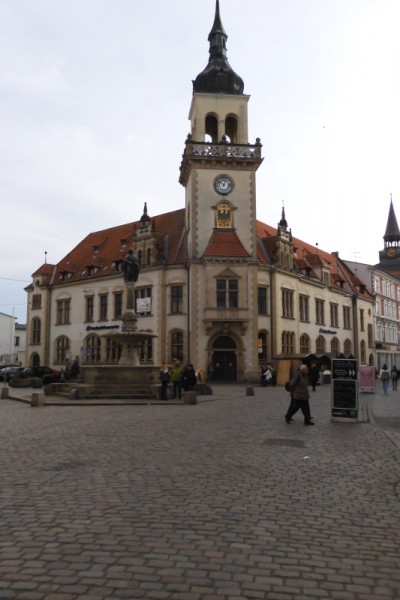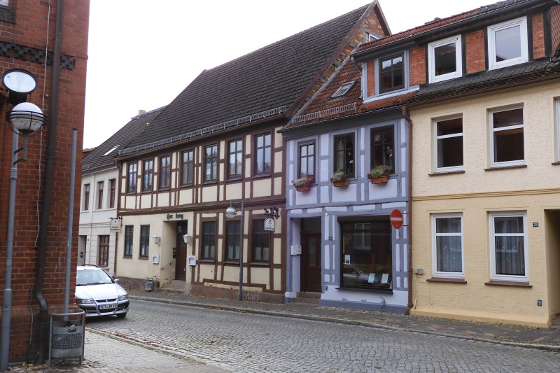 Das Wetter ist heute sehr ungemütlich, kühl und feucht, Mütze und Handschuhe wären eigentlich angebracht, liegen aber zuhause. Wir sehen uns in der Altstadt um, in der viele Fassaden von Fachwerkhäusern verkleidet oder verputzt wurden, um sie wertvoller aussehen zu lassen. Unterhalb der Schlossruine gab es wohl früher einen Küttelberg und auf der anderen Seite des Berges gibt es heute einen kleinen Weinberg.